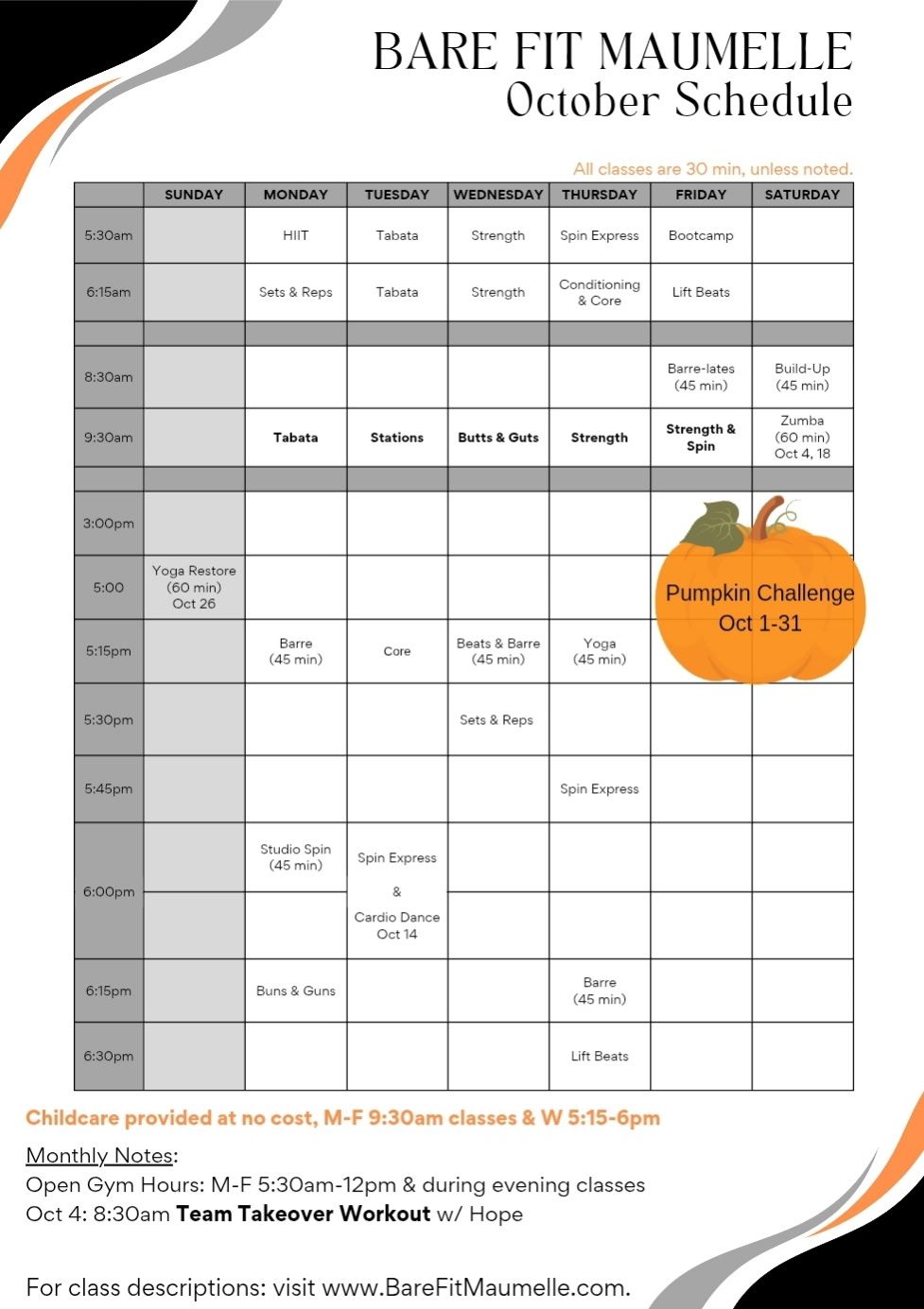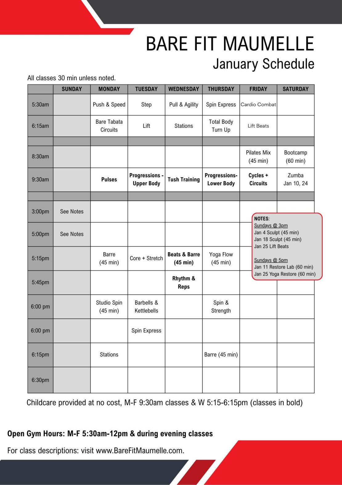 OPEN GYM: Monday - Friday 5:30am - 12:00pm & during evening classes